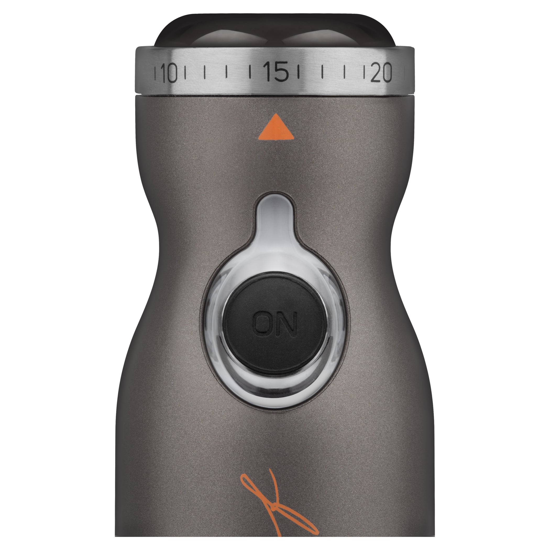 قسمت پایه که مستقیماً با مواد غذایی تماس دارد از جنس فولادی ضدزنگ است. این ویژگی امکان کار با مواد داغ را بدون نگرانی از آسیب دیدن فراهم میکند. علاوه بر این پایه قابل جدا شدن است که این امر فرآیند تعویض لوازم جانبی را ساده میسازد. دکمههای کنترل روی بدنه قرار گرفتهاند و دسترسی به آنها بدون نیاز به تغییر موقعیت دست امکانپذیر است.