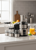 هر دو عملکرد آسیاب و خردکن با قطعات جانبی جداگانه فعال میشوند که نصب و جداسازی آنها آسان است. این طراحی به کاربر امکان میدهد به سرعت بین عملکردها جابجا شود و از دستگاه به عنوان ابزاری چندمنظوره استفاده کند. در مجموع، این ویژگیها تنوعی به آشپزخانه اضافه میکنند و نیاز به دستگاههای جداگانه را برطرف مینمایند.