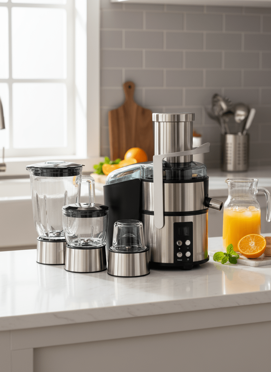 نصب قطعات جانبی برای عملکردهای مختلف سریع است و نیازی به ابزار اضافی ندارد. کاربر میتواند به راحتی از حالت آبمیوهگیری به مخلوطکن جابجا شود و زمان کمتری را صرف آمادهسازی کند. همچنین پایههای دستگاه ثبات را در حین کار تضمین میکنند و از حرکتهای ناخواسته جلوگیری مینمایند.