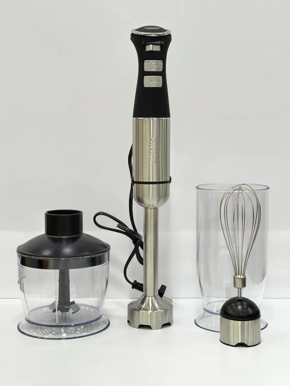 لوازم جانبی این دستگاه شامل سری همزن فلزی، ظرف خردکن و لیوان مخصوص است که هر کدام برای وظیفهای خاص طراحی شدهاند. سری همزن برای مخلوط کردن و همزدن مواد سبک مناسب است، در حالی که ظرف خردکن برای پردازش مواد خشک یا مرطوب کاربرد دارد. لیوان مخصوص نیز برای مقادیر کوچک و جلوگیری از پاشیدن مواد ایدهآل است. این لوازم با مکانیزم اتصال ساده به بدنه اصلی متصل میشوند و امکان تعویض سریع را فراهم میکنند. این مجموعه، دستگاه را از یک ابزار تککاره به سیستمی چندمنظوره تبدیل میکند که نیازهای مختلف آشپزی را پوشش میدهد.