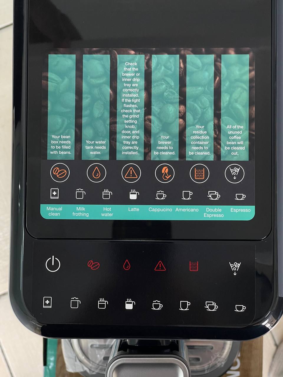 در عمل وقتی دستگاه را روشن میکنید صفحه نمایش روشن میشود و آیکونهای مربوط به انواع نوشیدنیها ظاهر میگردد. هر آیکون با تصویری ساده همراه است که نشاندهنده نوع قهوه است مانند اسپرسو یا کاپوچینو. این ویژگی اجازه میدهد تا کاربر بدون خواندن دستورالعملهای طولانی مستقیماً به تهیه قهوه بپردازد. علاوه بر این سیستم کنترل امکان تنظیم شدت قهوه را فراهم میکند که بر اساس ترجیحات شخصی قابل تغییر است. این انعطافپذیری در کنترل باعث میشود هر بار قهوهای متناسب با سلیقه فرد آماده شود.