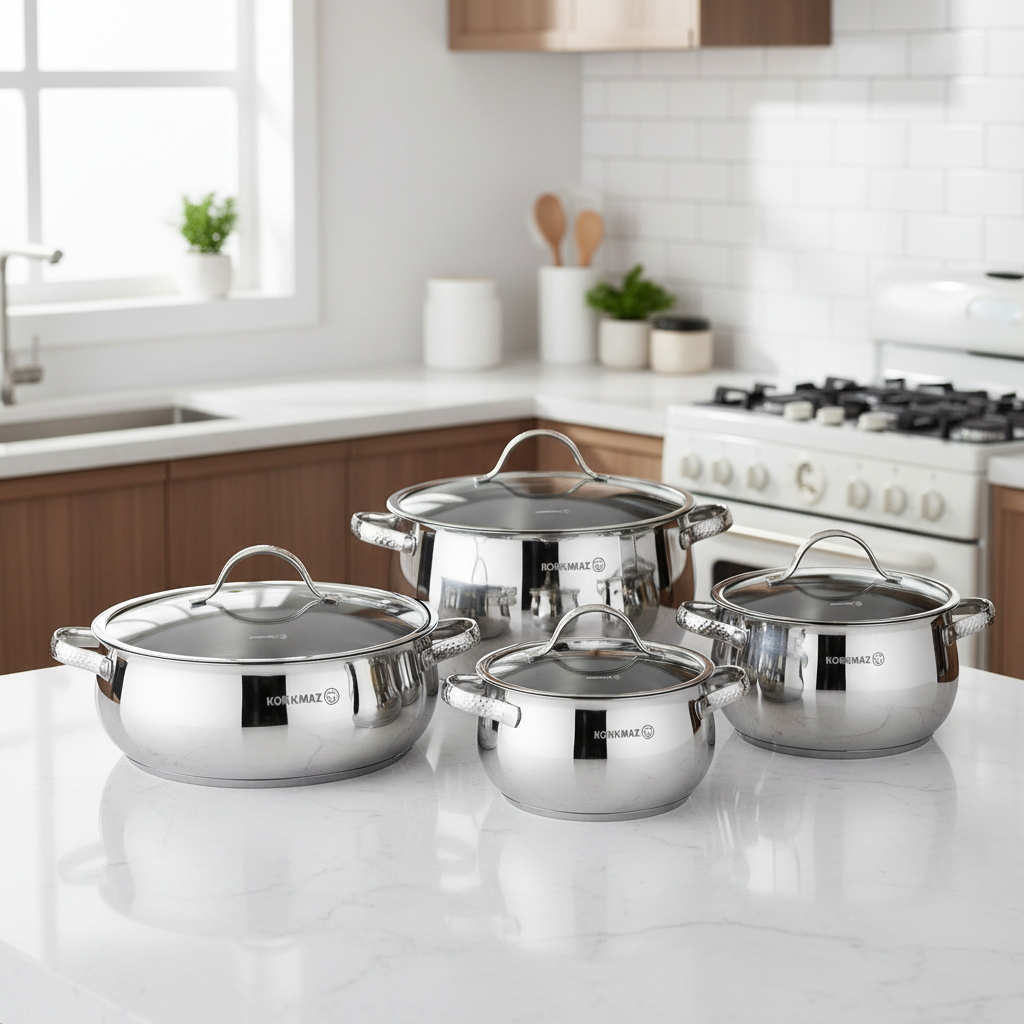 سرویس قابلمه کرکماز مدل A 1964 با مجموعهای از اندازههای مختلف، انعطافپذیری بالایی در آشپزی ارائه میدهد. هر اندازه برای مرحله خاصی از پخت مناسب است، از حجمهای کوچک برای سسها تا حجمهای بزرگتر برای غذاهای خانوادگی. این تنوع، اجازه میدهد تا از یک قطعه برای کارهای دقیق استفاده شود و از دیگری برای حجمهای بیشتر.