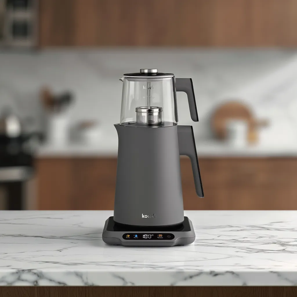 طراحی چایساز کوخ مدل KTG-2151 از همان نگاه اول، توجه را به خود جلب میکند. خطوط نرم و منحنیهای ملایم بدنه، آن را به عنصری هماهنگ با فضای آشپزخانههای مدرن تبدیل کرده است. رنگ خاکستری مات یا مشکی براق، بسته به مدل، انتخابی است که با اکثر دکوراسیونها همخوانی دارد و حس تمیزی و سادگی را منتقل میکند. این رنگها نه تنها مقاوم در برابر لکههای روزمره هستند، بلکه درخشش ملایمی به سطح دستگاه میبخشند که با نور آشپزخانه، جلوهای حرفهای ایجاد میکند.