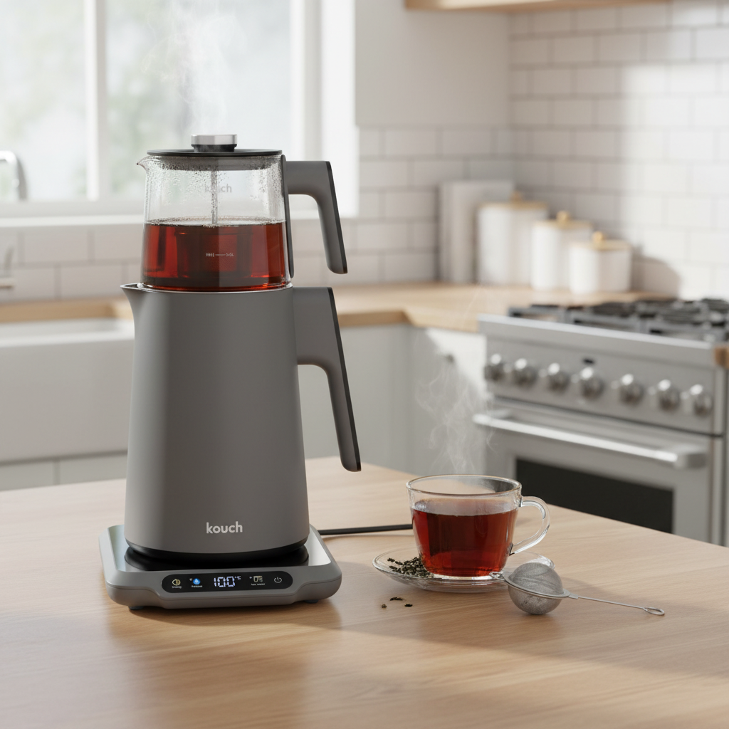 دم کردن چای در قوری، با طراحی رومیزی، طعم اصیل را استخراج میکند. بخار جوشان از کتری، به طور ملایم به قوری منتقل میشود و لایههای عطری چای را آزاد میسازد. تنظیم دما از طریق پنل لمسی، امکان انتخاب سطح حرارت را برای انواع چای فراهم میکند؛ مثلاً حرارت ملایمتر برای چای سبز تا حفظ آنزیمها، یا دمای بالاتر برای چای سیاه غلیظ. این دقت، هر بار چای را با تعادل کامل عطر و طعم تحویل میدهد.