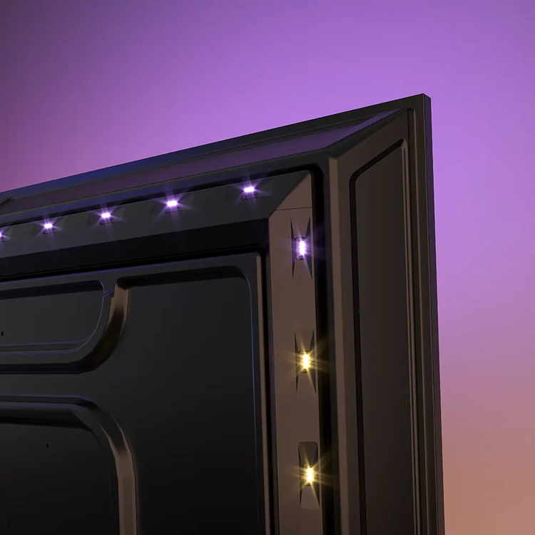 امبیشت در این مدل، طوری تنظیم شده که با محتوای در حال پخش همگام میشود. مثلاً در صحنههای هیجانانگیز، نورها تندتر چشمک میزنند و ضربان قلبتان را بالا میبرند، یا در لحظات آرام، نرم و ملایم میدرخشند تا حس آرامش را دوچندان کنند. فیلیپس این سیستم را به گونهای طراحی کرده که با موسیقی هم هماهنگ شود؛ تصور کنید یک کنسرت زنده را تماشا میکنید و نورها با ریتم درامها میرقصند، اتاق را به یک سالن خصوصی تبدیل میکنند.