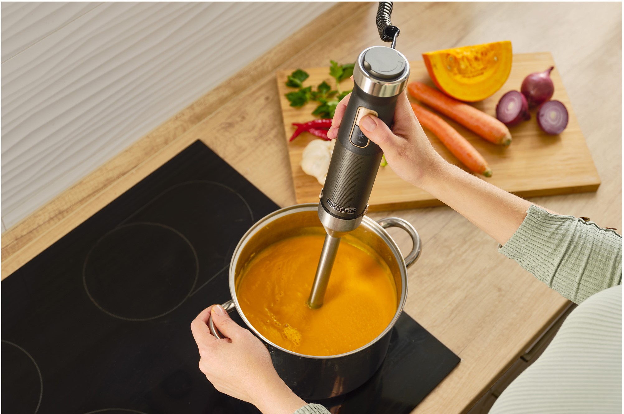 گوشت کوب برقی سنکور مدل SHB6552BK با تمرکز بر راحتی کاربر طراحی شده است. بدنه اصلی از پلاستیک مقاوم ساخته شده که در برابر ضربههای روزمره دوام میآورد و وزن مناسبی دارد تا در استفاده طولانی مدت دست را خسته نکند. دسته ارگونومیک آن به گونهای شکل گرفته که طبیعی باشد و کنترل دستگاه را در حین کار آسان کند. پایه و میله از استیل ضد زنگ هستند که علاوه بر استحکام، ظاهری مدرن به دستگاه میبخشد و با انواع ظروف آشپزخانه هماهنگ میشود. این طراحی اجازه میدهد دستگاه مستقیماً در قابلمه یا ظرف غذا استفاده شود بدون نیاز به انتقال مواد.
