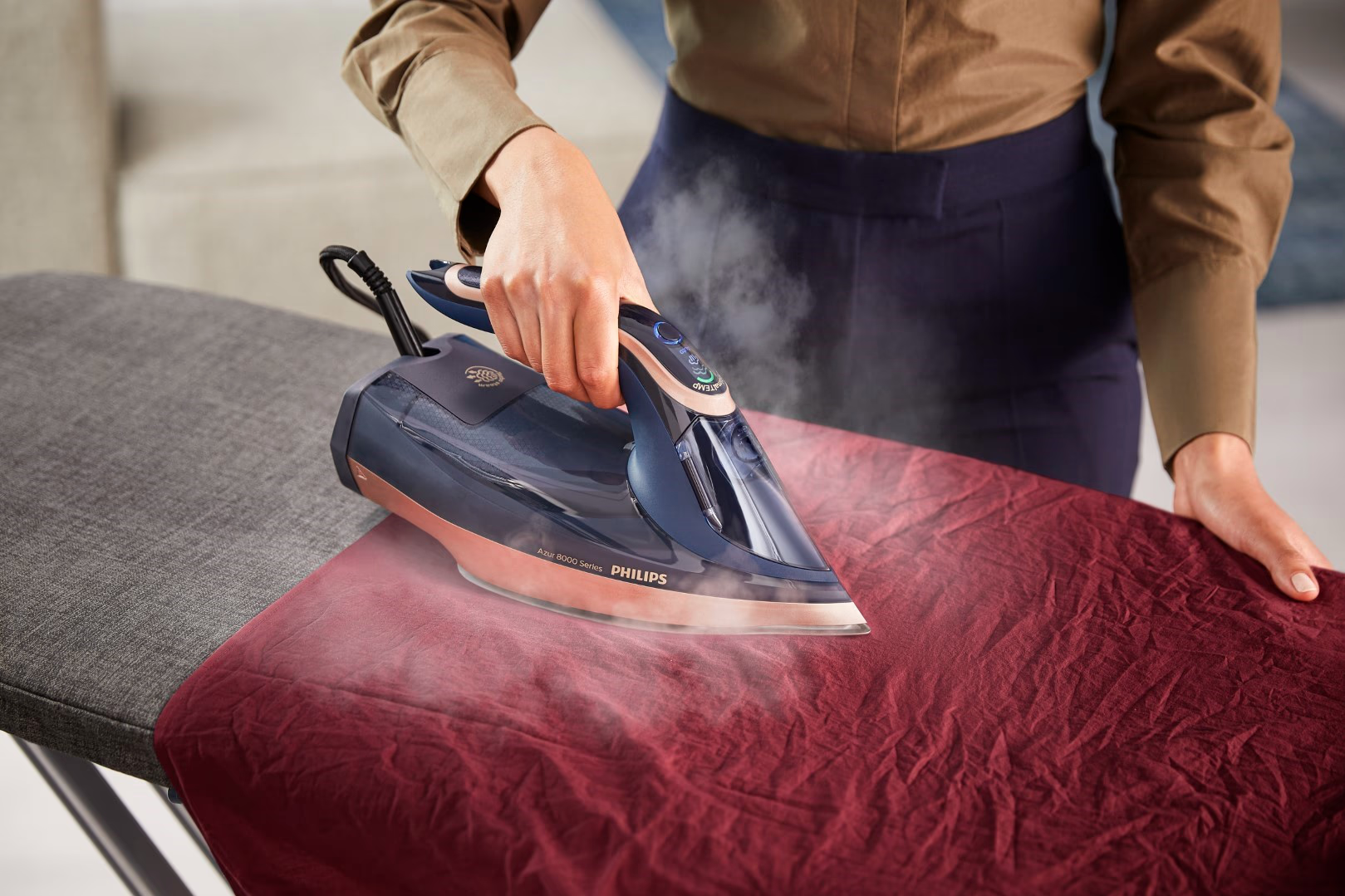 SteamGlide Elite Rosecopper در اتو بخار فیلیپس مدل DST8050 با سطحی فوقالعاده صاف و مقاوم، لغزشی بیرقیب بر روی انواع پارچهها فراهم میآورد. این کفی با پوشش رزکاپر پیشرفته، در برابر خش و ساییدگی مقاوم است و به راحتی تمیز میشود، به طوری که حتی پس از استفادههای مکرر، سطح آن مانند روز اول صاف باقی میماند. بخار از هزاران سوراخ ریز این کفی به طور یکنواخت خارج شده و با لغزش روان، بدون چسبیدن یا کشیدن پارچه، چروکها را محو میکند. کاربران در عمل متوجه میشوند که حرکت اتو بر روی لباسهای ظریف یا ضخیم بدون هیچ مقاومتی انجام میشود و نتیجهای بدون رد یا براقی ناخواسته به جا میماند.