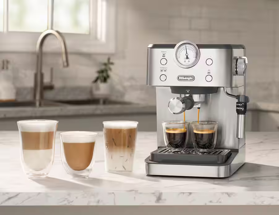 اسپرسوساز دلونگی مدل EM450M، ترکیبی هوشمندانه از طراحی کلاسیک ایتالیایی و عملکرد حرفهای در ابعاد فشرده است. این دستگاه نیمهاتوماتیک با پمپ ۱۵ باری ایتالیایی، استخراج دقیق ۹ باری را تضمین میکند و فشارسنج بصری امکان نظارت لحظهای بر فرآیند را فراهم میآورد. سیستم ترموبلوک پیشرفته با گرمشدن سریع و کنترل پایدار دما، اسپرسویی غلیظ با کرمای عالی خلق مینماید. نازل بخار قابل تنظیم دو حالته، فوم شیر نرم برای کاپوچینو یا میکروفوم برای لاتهآرت حرفهای تولید میکند.