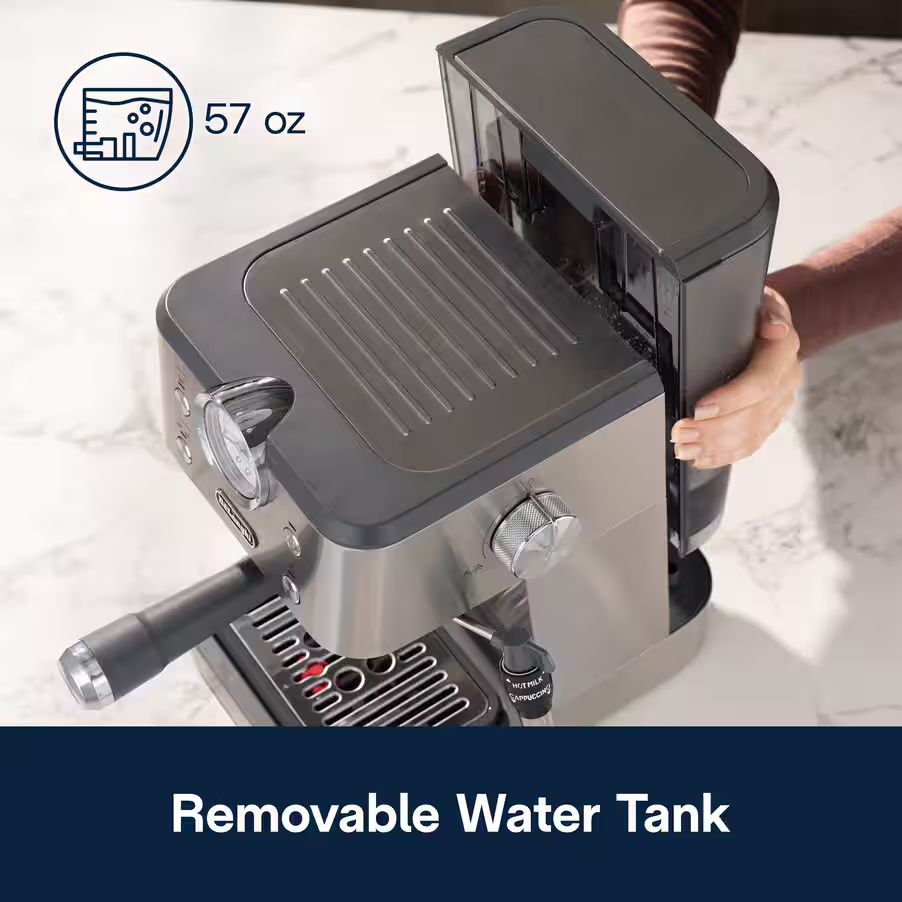 ظرفیت مخزن آب و راحتی کاربری روزانه اسپرسوساز دلونگی مدل EM450M