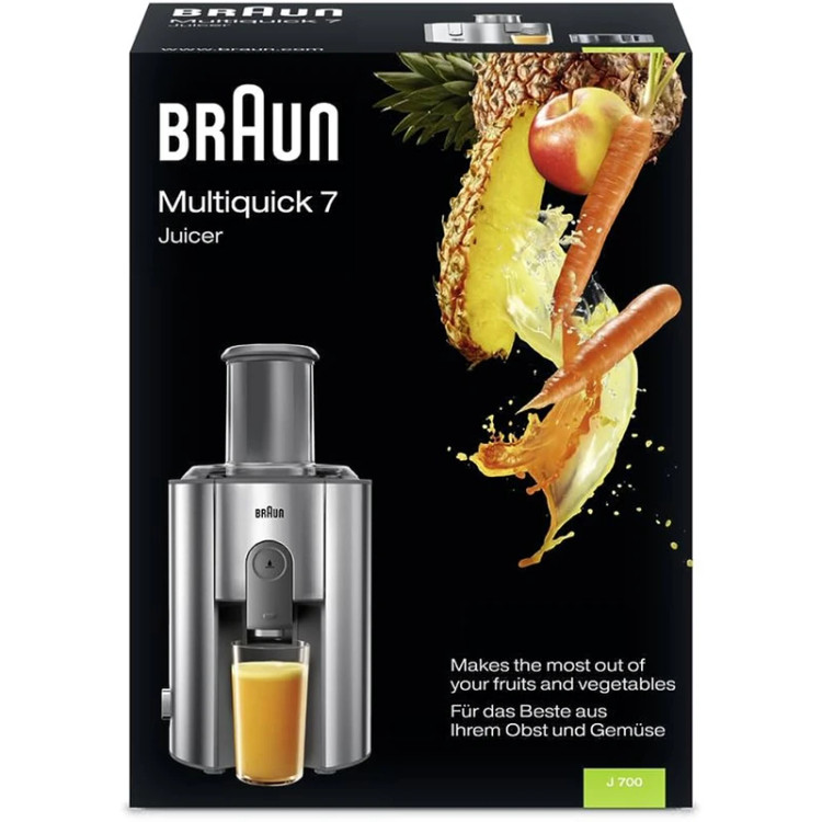آبمیوهگیری براون مدل J700 یکی از بهترین گزینهها برای علاقهمندان به تهیه آبمیوههای تازه و طبیعی در خانه است. این دستگاه با طراحی زیبا و کاربرپسند خود، به شما این امکان را میدهد که در کمترین زمان ممکن، انواع میوهها و سبزیجات را به آبمیوههای خوشمزه تبدیل کنید. قدرت موتور این آبمیوهگیری به حدی است که میتواند به راحتی میوههای سفت را نیز آبگیری کند و در نتیجه، شما میتوانید از تمامی ویتامینها و مواد مغذی موجود در میوهها بهرهمند شوید.