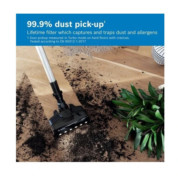 یکی از ویژگیهای بارز جارو شارژی بوش BCS711GB، سیستم فیلتر HEPA آن است که به طور مؤثری ذرات ریز گرد و غبار و آلرژنها را جذب میکند. این ویژگی به ویژه برای افرادی که به آلرژی مبتلا هستند، بسیار حائز اهمیت است. همچنین، این جارو شارژی دارای چندین حالت قدرت مکش است که به شما این امکان را میدهد تا بر اساس نوع سطح و میزان کثیفی، قدرت مکش را تنظیم کنید. این انعطافپذیری باعث میشود که تمیز کردن سطوح مختلف، از فرش گرفته تا کاشی، به آسانی انجام شود.