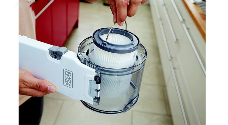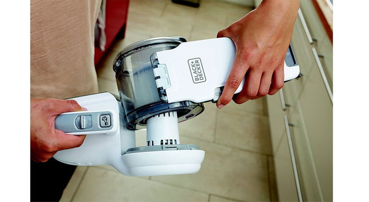 این مدل مخزن زیاله جدا شونده دارد که راحتی در استفاده و پاکیزگی را براتون به ارمغان می آورد و طراحی ارگونومیک محصول استفاده از اون را برای شما آسان تر کرده است .قطعات این جارو شارژی بلک اند دکر قابل جدا سازی است و می توانید آن ها را به راحتی تمیز و بهداشتی کنید.این جارو شارژی بلک اند دکر مجهز به سیستم Eco Fast Charge می باشد که موجب می شود مدت زمان لازم برای شارژ کامل آن بسیار کاهش یابد و به حدود 4 ساعت برسد.نازل این جارو شارژی بلک اند دکر 200 درجه می چرخد. این ویژگی از دو جهت به بهبود عمکلرد جارو شارژی کمک کرده است. اول اینکه براحتی میتوان به مکان هایی که دسترسی به آنها سخت است، همچون بالای کمد، کتابخانه، قفسه ها و لبه پنجره ها دسترسی داشت بدون آنکه نیازی به صندلی باشد. در عکس ها این ویژگی کاملا مشهود است. دوم اینکه حمل و نگه داری آن راحت تر است. براحتی می توان در هر سفری آن را به همراه خود برد، داخل چادر، ماشین و یا اتاق اجاره ای را تمیز نمود.