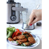 این آبمیوه گیری برقی تککاره، با توان مصرفی 1000 وات و مخزن آبمیوهگیری تولید شده است. همچنین این محصول به مخزن تفاله هم مجهز است.