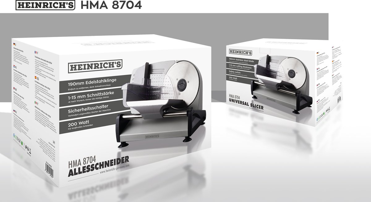 در مرکز عملکرد هر دستگاه برش تیغه آن قرار دارد. هنریچ در مدل 8704 از یک تیغه فولادی ضدزنگ با قطر استاندارد استفاده کرده است که علاوه بر طول عمر بالا قابلیت برش دقیق و یکنواخت را برای انواع مواد غذایی فراهم میکند.
