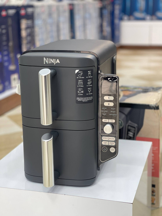 سرخ کن نینجا SL400 با طراحی کمجا و ظرفیت 9.5 لیتر، برای خانوادههای پرجمعیت مناسب است. دو محفظه 4.75 لیتری، امکان پخت همزمان چهار وعده را فراهم میکنند. فناوری Dual Crisp و توان 2470 وات، غذاها را با حداقل روغن ترد میپزد. شش عملکرد پخت، از پخت کیک تا خشک کردن میوه، این دستگاه را چندمنظوره میکنند. پنل دیجیتال با قابلیت پخت همزمان و خاموشی خودکار، کاربری را راحت میکند. سبدهای نچسب سرامیکی، شستوشو را آسان میسازند. با استانداردهای ایمنی بالا و طراحی ارگونومیک، این سرخ کن کیفیت برند نینجا را به نمایش میگذارد و آشپزی مدرن را به سطحی جدید میبرد.