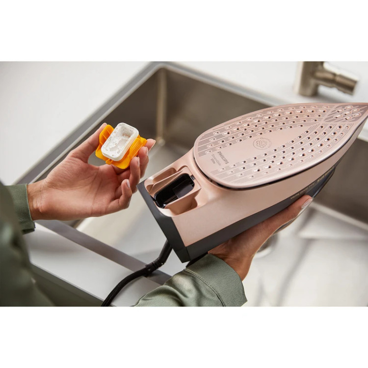 سیستم رسوبزدایی Quick Calc Release در اتو بخار فیلیپس مدل DST8041 یکی از ویژگیهای برجستهای است که به کاربران این امکان را میدهد تا به راحتی و به سرعت رسوبات موجود در اتو را از بین ببرند. این سیستم با طراحی هوشمند خود، فرآیند رسوبزدایی را ساده و سریع کرده و به کاربران کمک میکند تا عمر دستگاه خود را افزایش دهند. با استفاده از این فناوری، دیگر نیازی به نگرانی دربارهی تجمع رسوبات و کاهش کارایی اتو نیست.یکی از مزایای مهم سیستم Quick Calc Release، قابلیت جداسازی آسان رسوبات است. کاربران میتوانند به راحتی مخزن رسوب را خارج کرده و آن را تمیز کنند. این ویژگی به ویژه برای افرادی که از آب سخت استفاده میکنند، بسیار مفید است. با توجه به اینکه رسوبات میتوانند به عملکرد اتو آسیب بزنند، این سیستم به کاربران این اطمینان را میدهد که اتوی آنها همیشه در بهترین وضعیت کار میکند و کیفیت بخار تولیدی آن حفظ میشود.